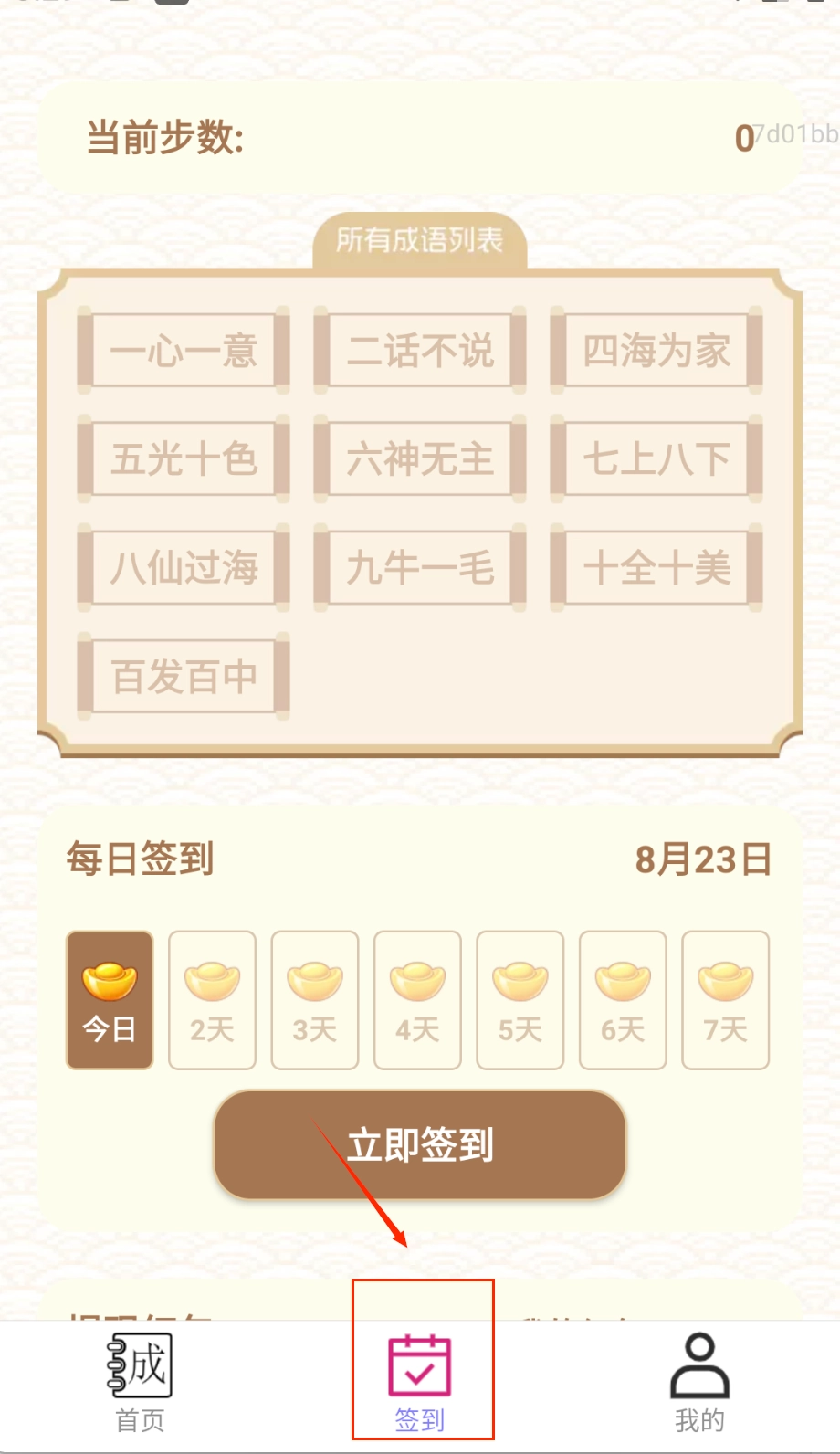 通过步数兑换、每日签到等机制激励学习,包含成语挑战、规则说明、红包提现等功能。其特色设计将运动步数与知识获取结合,让学习过程充满乐趣。简洁的界面和多样的玩法,既能积累成语知识又能获得实际奖励。无论是休闲娱乐还是知识拓展,这款应用都能带来独特体验。安装完成后注册账号,到首页熟悉各个功能模块的情况。每天积累的步数能够用来兑换游戏道具,这样可以提高闯关的成功率。