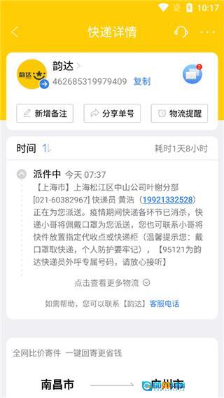 2、是一款很方便的快递寄送和查询应用,可以实时跟踪你的快递物流信息,更细致,更快,对快递动态。