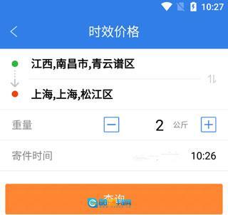 2、输入收寄件的详细地址以及重量,点击查询;