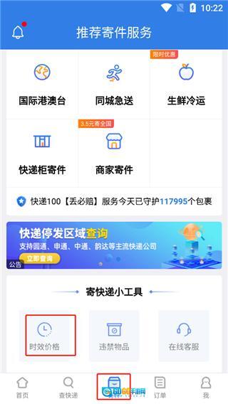 1、点击寄件,选择时效查询;