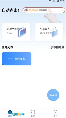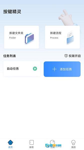1、打开自动按键点击,进入软件后授予软件运行所必需的权限,在首页的“任务列表”下点击“添加任务”,输入任务名称,点击确定即可进行下一步。