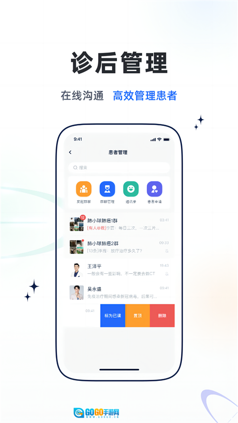 专业社交网络:搭建医生专属的交流平台,助力病例研讨、学术研究及产品宣传,配备乐问拜访功能,帮助医药代表在线预约医院的学术交流活动。