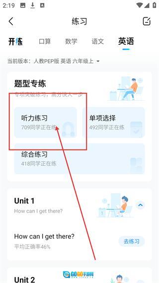 进入练习页面后,先切换到【英语】标签页,接着选择【听力练习】这个选项,就能进入专门的听力训练界面啦。
