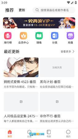 2、漫画推荐:软件会定期更新推荐不同风格和题材的漫画作品,让用户探索新的阅读选择。