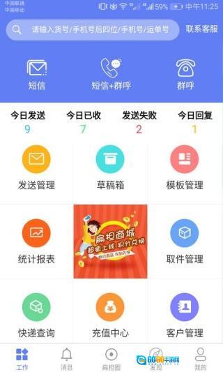 2、点击查看工作页面的功能,直接选择短信或群呼,再选择发送管理。