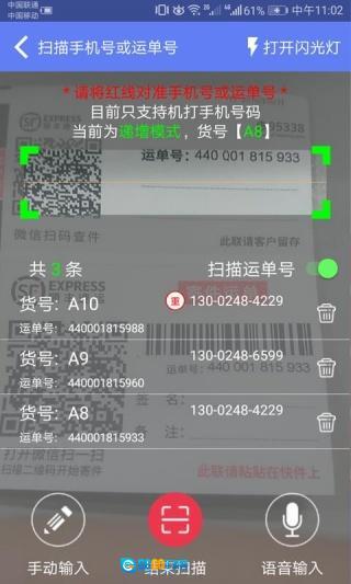 2、还能通过扫描单号二维码的方式,快速输入物流信息。