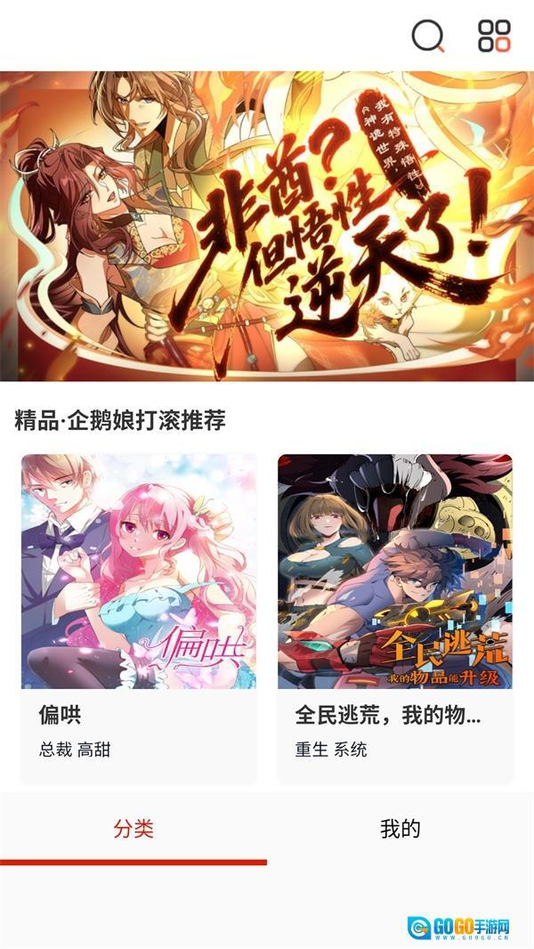 3、接着我们能在自己偏爱的漫画分类中挑选,选好之后就能立刻打开漫画开始阅读。
