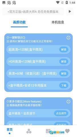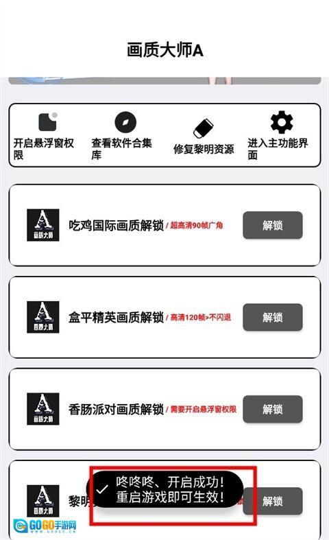 :这款软件可以免费使用体验,不需要花钱,在这里可以放心的进行使用,运行体验起来很不错。用户先打开软件,接着在界面上能看到各类待优化画质的游戏清单,选好目标优化游戏后,会出现一个“解锁”按钮,此时用户需点击该按钮。