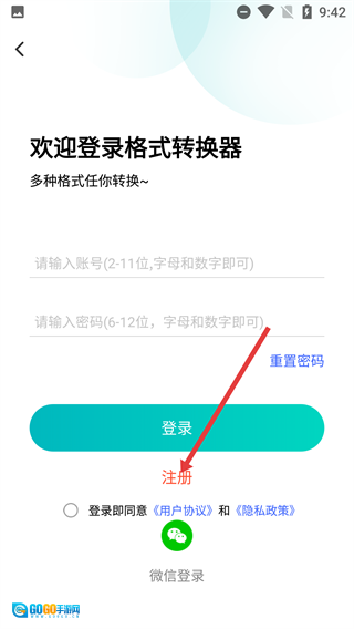 3、进入登录页面后,可输入符合要求的账号密码,也可选择【微信登录】,还能点击【注册】按钮进行账号注册。