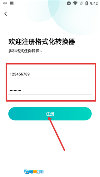 4、在注册页面的输入框中填写账号与密码,确认信息无误后,点击【注册】按钮完成账号注册操作。