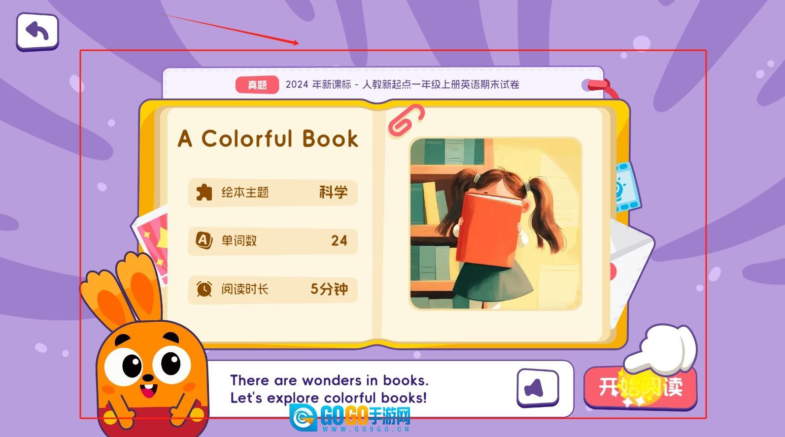 3、挑选出感兴趣的绘本后,就能开启分级阅读模式,该模式能够帮助用户逐步积累词汇量、提升阅读理解能力,从而构建起系统的学习流程。