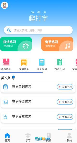 1、大家在首页的英文练习模块里,选择英语单词练习后点击立即学习即可。