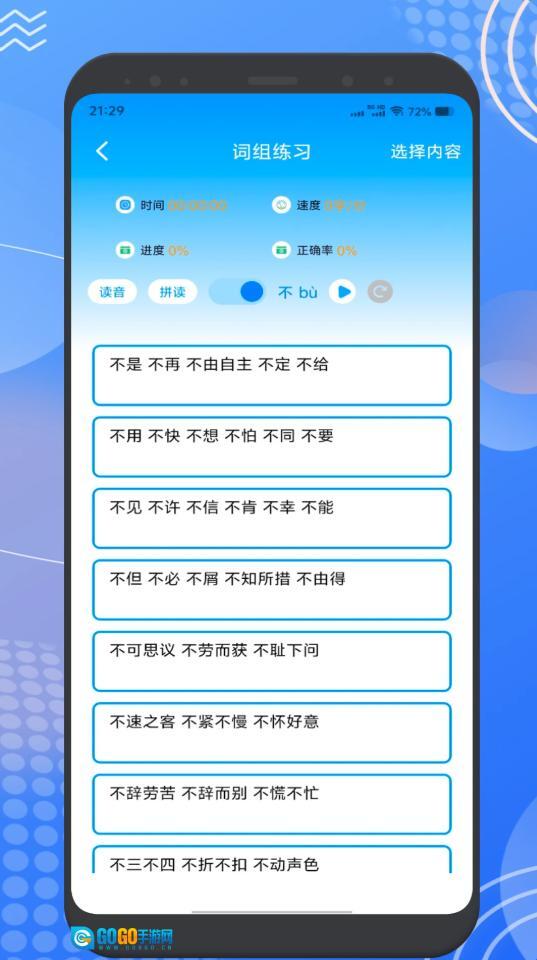 2、在英语单词练习界面,大家可以选择小学、初中、高考等不同阶段的英语单词进行练习。