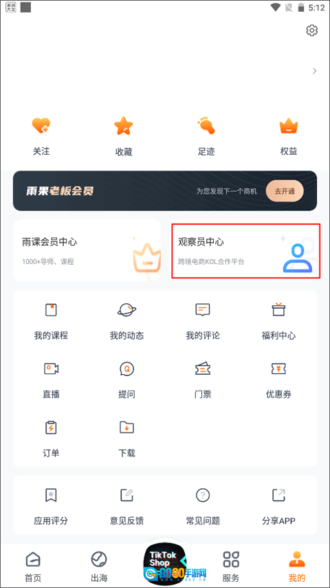 1、切换到【我的】界面,在上方有一个观察员中心,点击它。