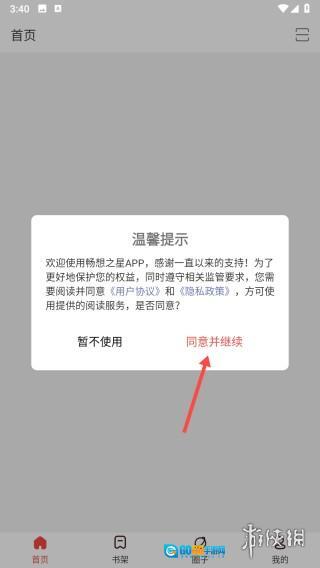 1、打开应用程序后,仔细阅读并同意用户协议,随后点击【同意并继续】按钮,即可进入登录界面。