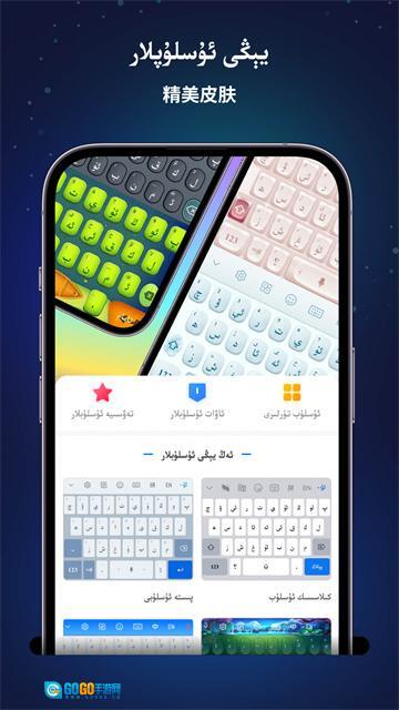 1、多语键盘:支持维吾尔语、汉语、哈萨克语、柯尔克孜语、英语5种文字免切换混合输入,词库通过云端实时更新。