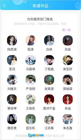 3、输入你的作品名称,选择角色导入作品,书籍中可以自由创建编辑。