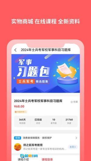 师之航军考挺好用的,专为军考备考设计,提供全面的学习服务,包括在线课程、资料查询和功能,用户可随时进行习题练习,该平台致力于为考生提供便捷有效的学习体验,助力成功应对军队相关考试。