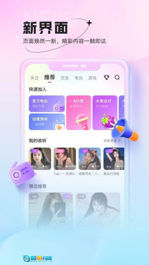 鱼声是一款充满温度的声音社交软件,在这里,你能循着声音的轨迹邂逅心仪的TA,体验轻松自在、毫无压力的交友氛围。平台功能丰富多元,涵盖声音邂逅、扩列交友、K歌欢唱、猜歌挑战、相亲匹配等多种玩法——你可以进入房间点唱心仪曲目,也能结识志同道合的新朋友,或是化身麦霸尽情释放自我,甚至可以寻求专业的情感咨询。 它的推送机制十分精准,在“遇见好声音”板块,系统会智能推送你偏好的声音类型,你可以直接进入TA的直播间,与对方畅快聊天直至深夜。此外,平台还设有虚拟形象、缘分漂流瓶、个性装扮、成长任务、明星等级等特色系统,让你在使用过程中始终充满新鲜感,不会感到单调乏味,更能将一个个有趣的灵魂紧密联结在一起。你还在犹豫什么?快来加入鱼声吧!