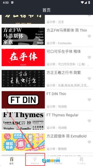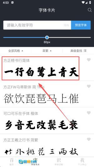 1、点击“字体卡片”选项,进入字体选择界面,开启您的个性化文字定制之旅。