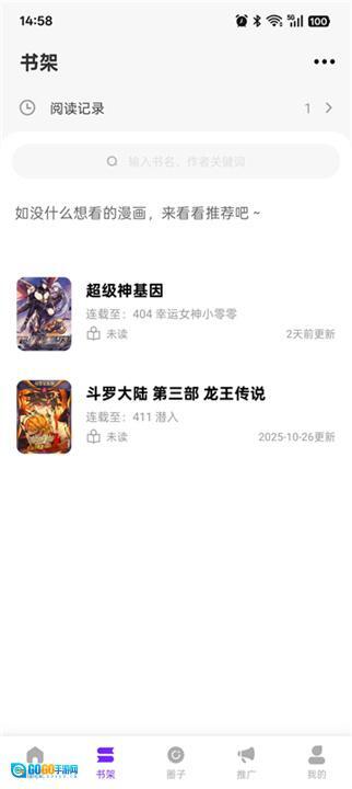 2、在书架中可以轻松的加入你喜欢的漫画,让你实时快速的进行阅读;