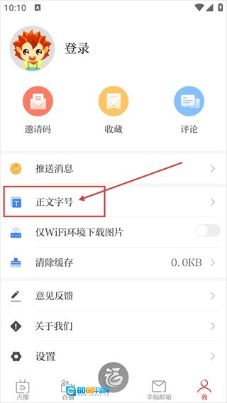 进入个人页面后,可看到【收藏】【评论】等功能选项,找到【正文字号】并点击,即可进入字号调整界面。