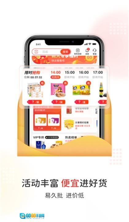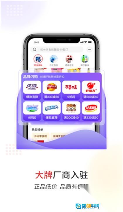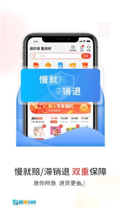 2. 进货专区分类清晰详尽,覆盖食品百货、酒水饮料等多个领域,采购流程简便易行且高效流畅。