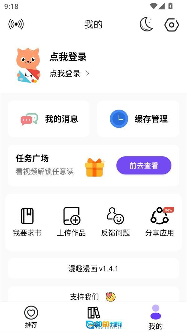1、首先在开心电玩并安装漫趣漫画安装免费版,安装完成后打开进入到主界面。