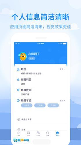 与电脑端平台同步,允许用户在手机上直接查看并维护个人的员工资料与账户设置。
