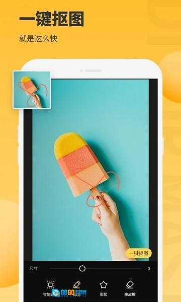 1.智能抠图功能:应用采用先进的识别技术,能够精确分离图片主体与背景,人物或物品的边缘处理干净自然。