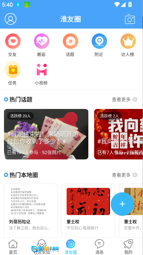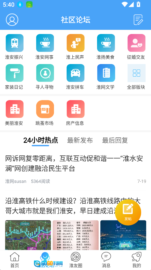 2. 浏览各版块:用户能够便捷地浏览淮水安澜的各个版块,开展互动交流、留言分享、调侃点赞等活动。
