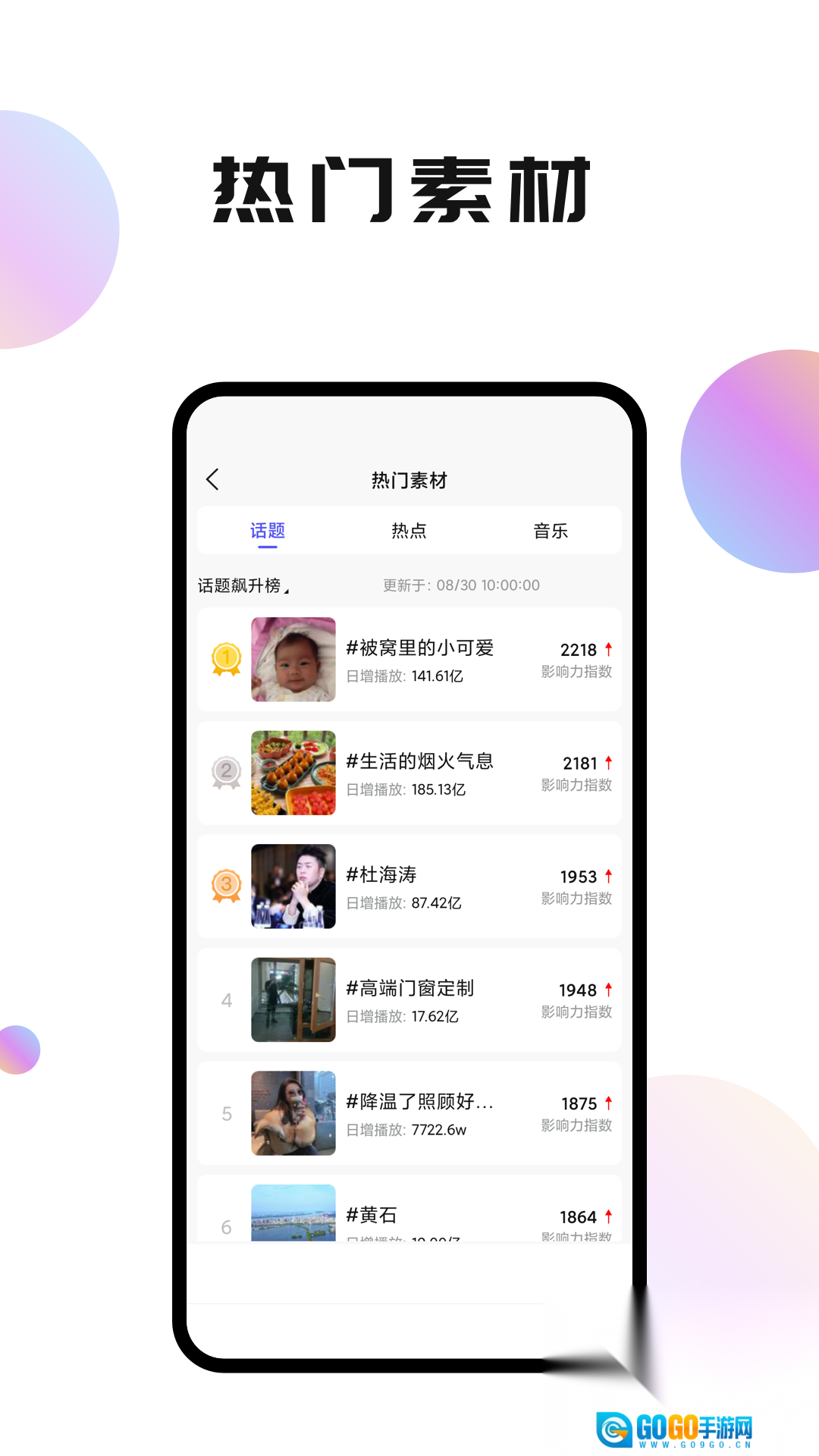 整合话题、热点、音乐等各类热门素材,并且实时更新,以满足多样化的视频创作需求。