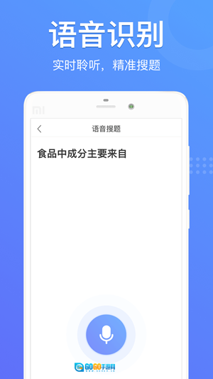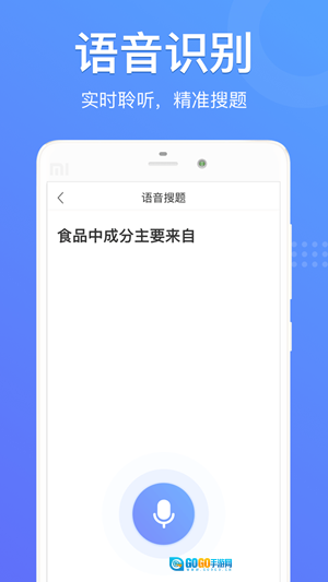 支持语音识别搜题,借助强大的语音识别功能,对着麦克风说出题目,快速识别为文字。