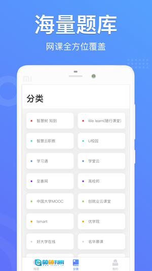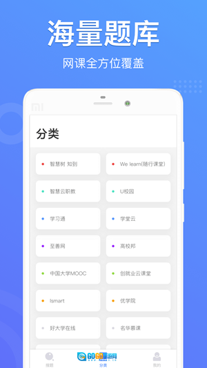 4、分类界面可以看到各大平台的网课。