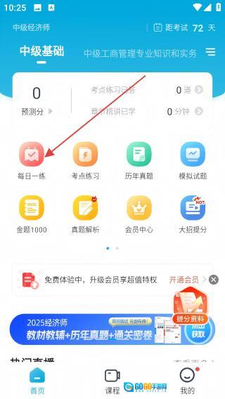 1、进入中级经济师首页,点击【每日一练】图标,进入练习列表。