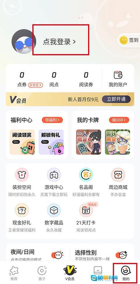 1、打开腾讯漫画最新版,在“我的”点击“登录”。