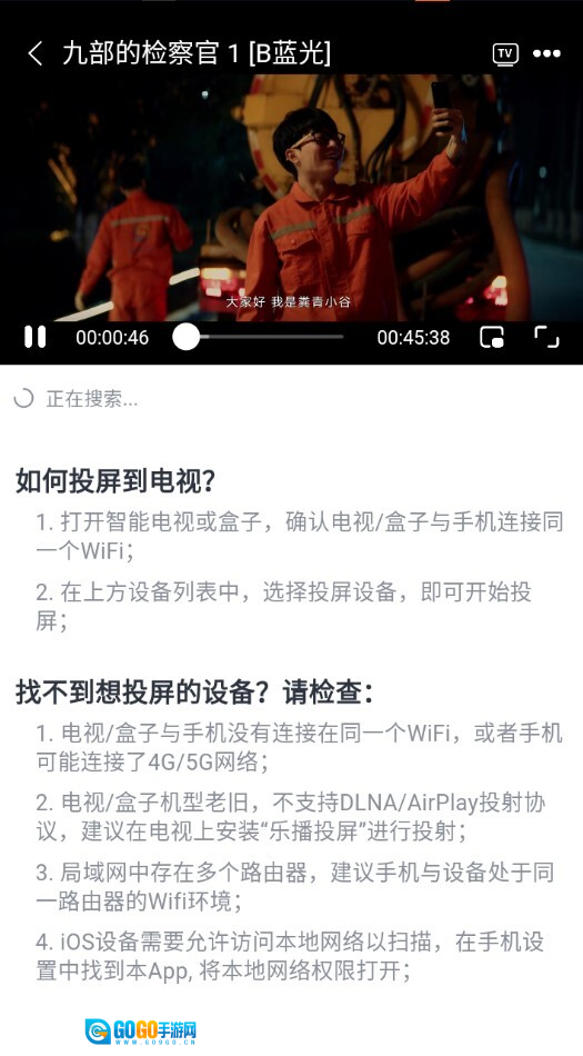 温馨提示:手机要与投屏设备处于相同网络下!