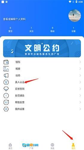 1、打开应用,点击底部“我的”选项,随后选择“真人认证”入口。