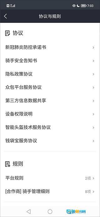 3、接着在协议与规则中找到并点击“【合作商】骑手管理细则”;