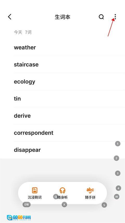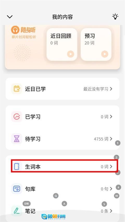 2、接着点击“生词本”。