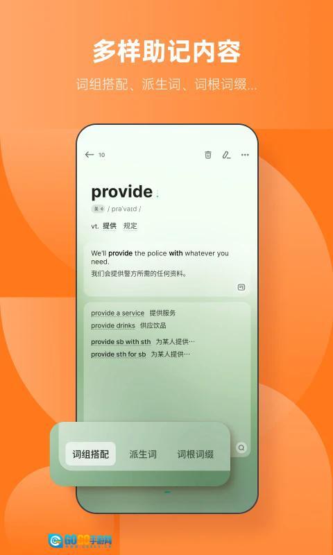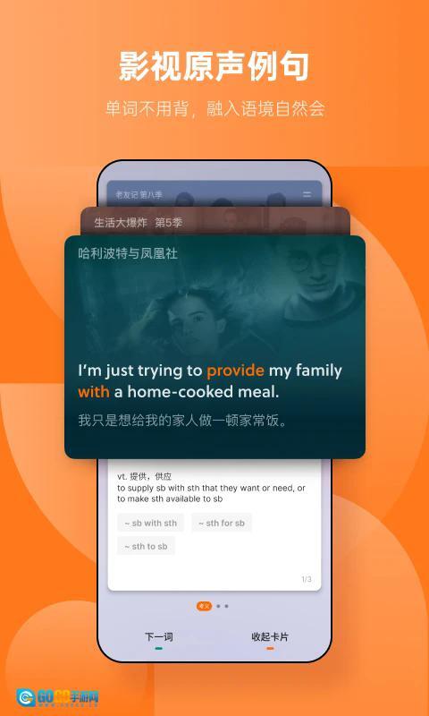 3、有着上百万条原声例句,结合现实情境活学活用,利用偏旁部首来串记单词,加深记忆印象