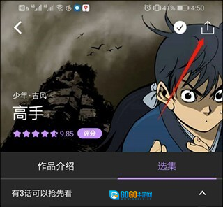1、在手机中打开manwa2,点击打开一部漫画,点击右上角的。