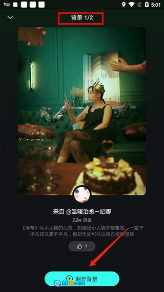 4、不仅支持自行制作背景,还能在上分看到目前该音乐供提供了2个视频背景;