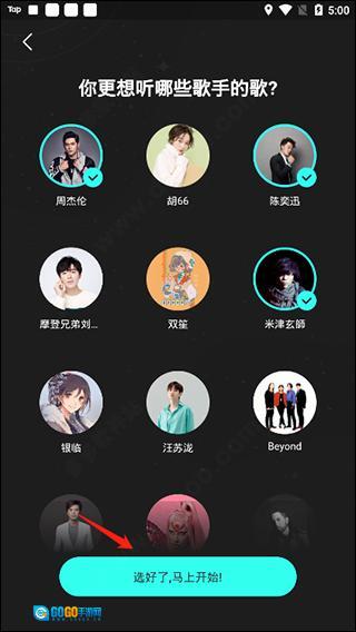 2、接着还会问更想听的歌手,以便更好的推荐你喜欢的歌曲;