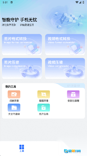 首先,打开这款软件并进入工具界面,该界面里有各种可用于图片处理、视频处理以及文件清理的工具。