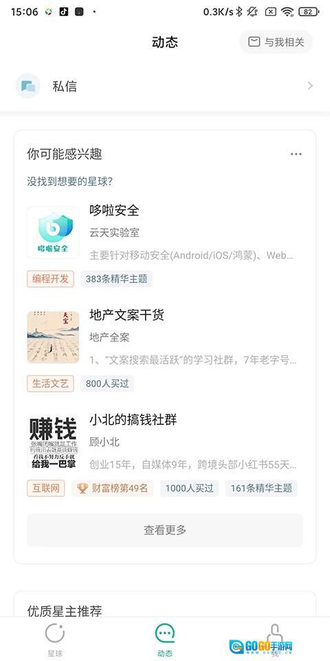 5、最后您也可以在动态查看关于您的私信和星球内用户发布的内容。
