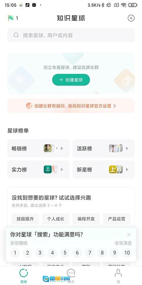 1、打开知识星球,你可以直接点击首页的创建星球或是在上方搜索框搜索;