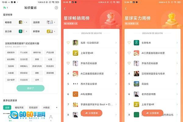 4、下方还有各种知识星球榜单,可以选择你感兴趣的星球加入探索学习;