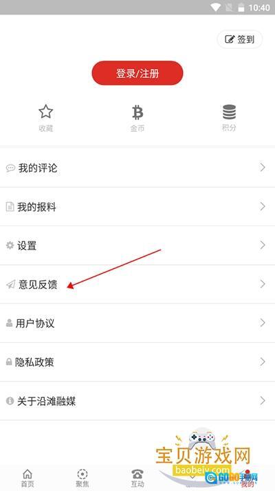 2、在我的界面内,找到并点击“意见反馈”;