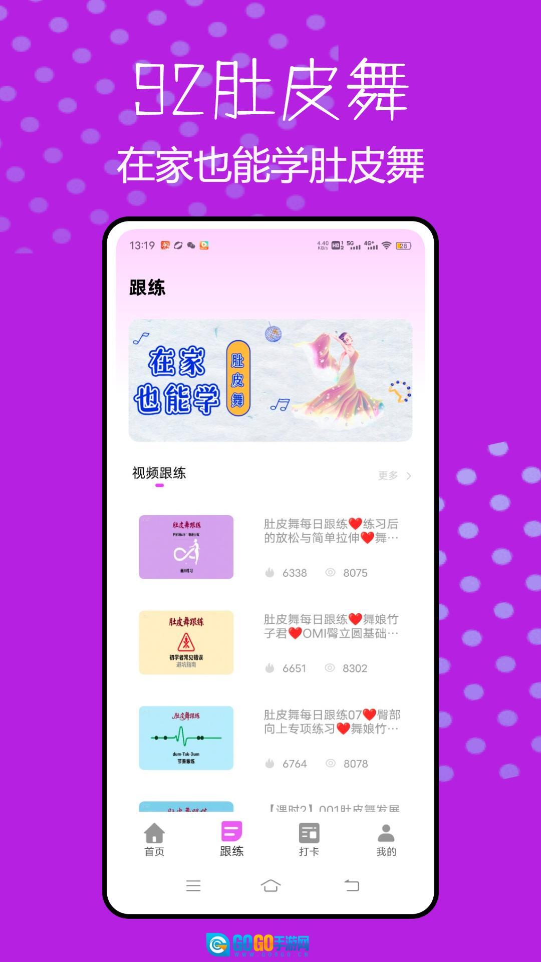 肚皮舞大全是一款专为肚皮舞爱好者打造的学习类软件,专注零基础用户教学,涵盖丰富的视频教程,包括基本功、成品舞、技巧分解等,满足全方位学习需求,界面设计清晰,设有首页、跟练、肚皮舞表演、打卡、我的等板块,功能划分明确,方便用户快速找到所需内容。